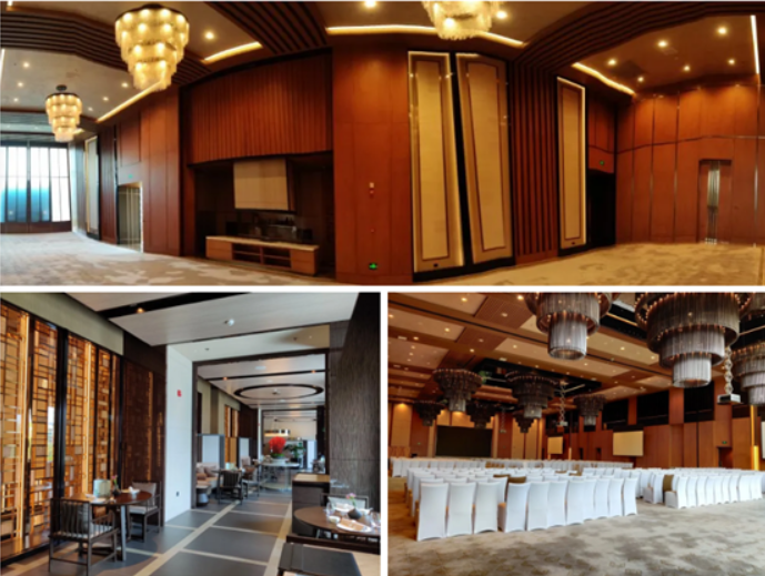 主題為“絲綢之路”的小宴會(huì)廳位于酒店一樓,可分合式的宴會(huì)廳,能夠根據(jù)使用需求任意組合布置,滿足餐飲、會(huì)議、宴會(huì)等多種場(chǎng)景。現(xiàn)在的擴(kuò)聲系統(tǒng)采用EV 8寸吸頂,由AEV的DPA系列內(nèi)置DSP數(shù)字功放以定阻模式驅(qū)動(dòng)。投影采用EPSON高清激光投影機(jī),根據(jù)安裝位置更換的不同的鏡頭,達(dá)到投影的最佳效果。