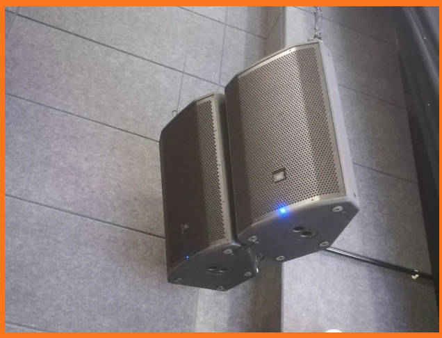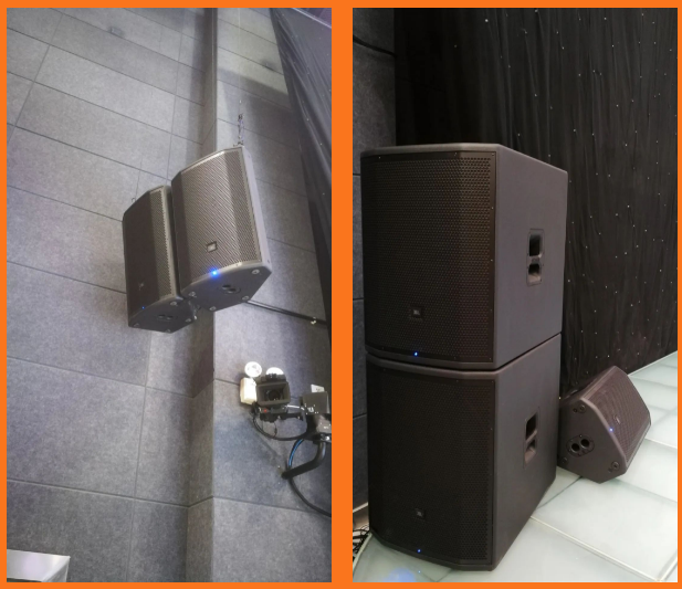 川師大綜合實驗樓小劇場舞臺上的主擴聲系統(tǒng)由美國JBL PRX800系列中的PRX815W有源15寸兩分頻以及PRX818XLFW有源18寸超低頻擔任,PRX 812W有源12寸兩分頻作為舞臺監(jiān)聽以及前補聲。
