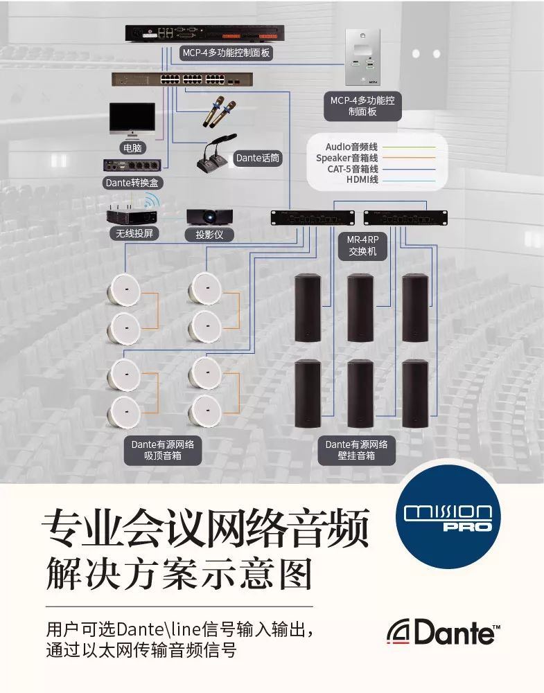 Mission Pro數字網絡音頻系統廣泛應用于會議室、報告廳、多功能廳、劇場劇院、戶外流動演出、體育場館、電影院等多種場所。