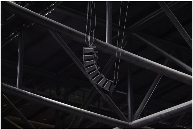 由于馬道在膜上方,揚聲器沒有固定安裝點,因此安裝和檢修非常困難。另外,其上下擺動的幅度達到1.5米以上,為整個擴聲解決方案設計增加了很多難度。