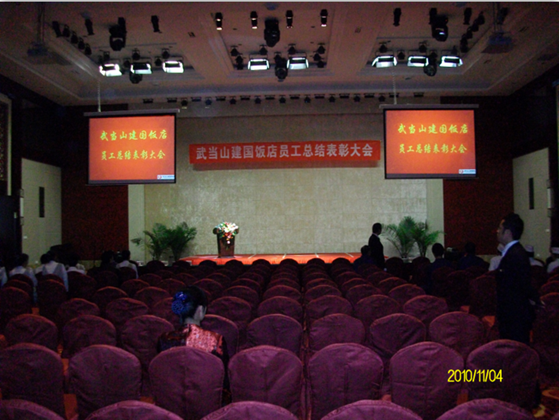 酒店宴會廳集合了會議、晚會表演為一體的多功能舞臺,燈光要求既能滿足會議攝像要求,又要能滿足舞臺表演要求。需要基礎(chǔ)光和舞臺效果燈具的結(jié)合使用,針對主席臺面光、頂光、側(cè)光、耳光和逆光的布置,可選用高顯色指數(shù)的LED影視平板柔光燈和LED影視聚光燈或LED數(shù)字聚光燈。