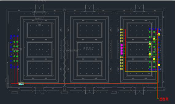 LED數(shù)字聚光燈具同時備多種彩色效果,并適當(dāng)增加電腦搖頭燈具和泡泡機(jī)、煙機(jī)等特效設(shè)備以滿足舞臺表演需求。