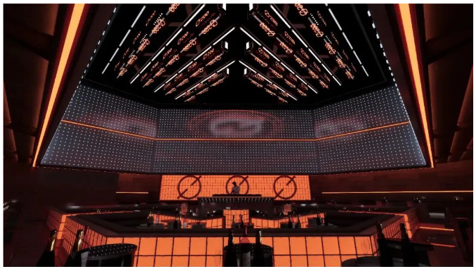 9米挑高空間,讓人耽迷於極致自如半透明水晶屏幕與可升降星體造型燈跟隨音樂韻律變幻姿態(tài)。