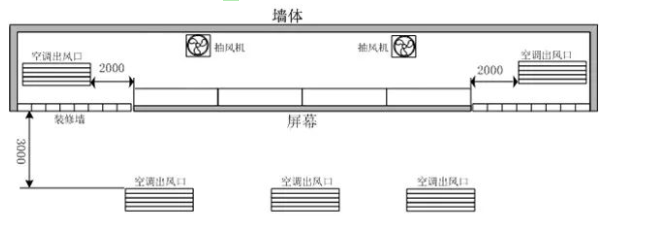 2) 位于大屏幕顯示系統維修通道內的空調(中央空調或柜式空調),其出風口位置應盡量遠離后側箱體,并且出風口的冷風絕對不能對著屏幕直吹,要朝遠離屏幕的方向吹,以避免屏幕冷熱不均勻而損壞和結露現象。