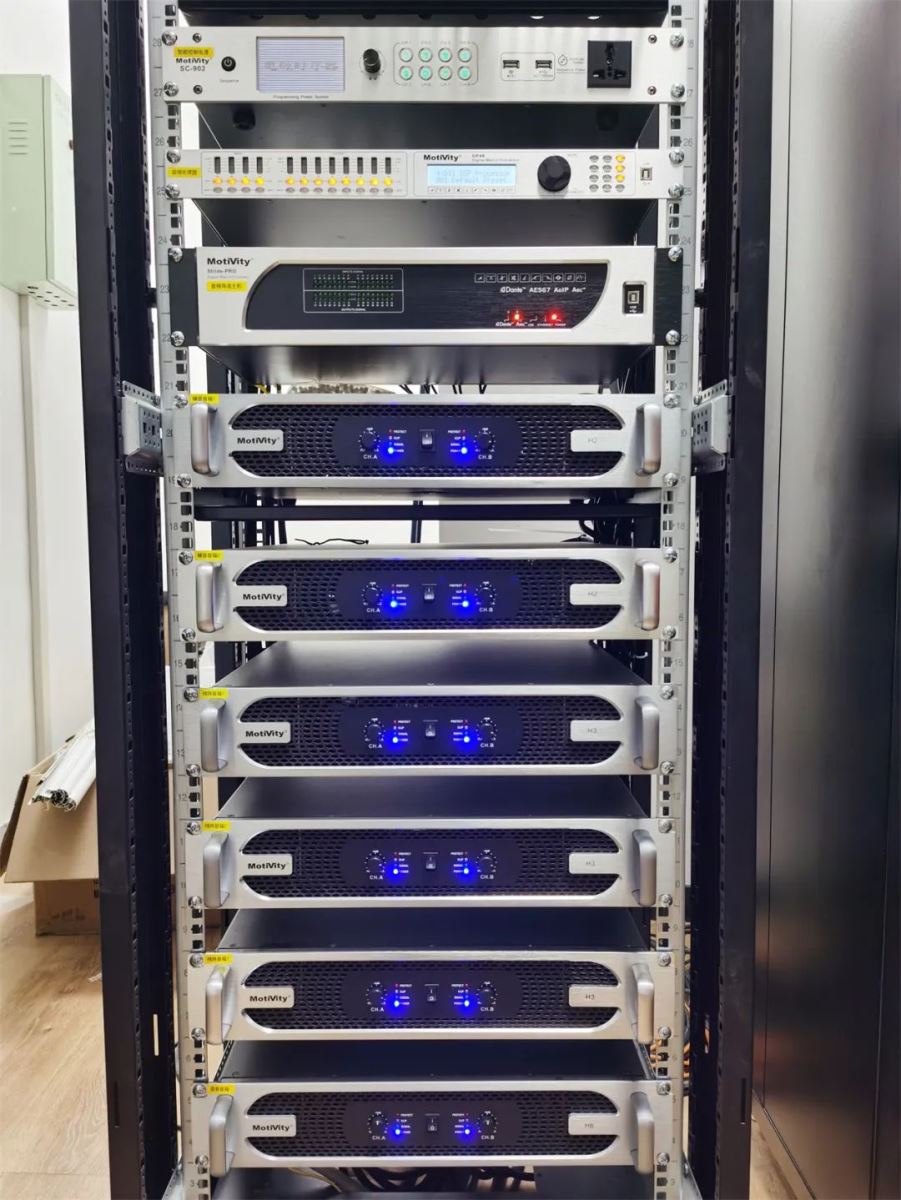 為了保障整個擴(kuò)聲系統(tǒng)的效果與穩(wěn)定性,讓系統(tǒng)的處理能力和工作效率更加出色,現(xiàn)場搭配使用了H系列功放(H2/H3/H6)、DP48和Stride-Pro數(shù)字音頻處理器、MX3232視頻混合矩陣、SC-902電源時序器、MD1810數(shù)字調(diào)音臺等設(shè)備。