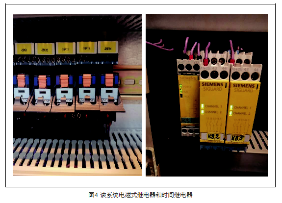 在舞臺機械電氣控制系統(tǒng)中,繼電器是其中必不可少的部件。繼電器的種類很多,通常分為保護繼電器和控制繼電器兩大類。該系統(tǒng)曾發(fā)生因繼電器損毀致使轉(zhuǎn)臺不能轉(zhuǎn)動的故障。該系統(tǒng)的電磁式繼電器和時間繼電器見圖4。