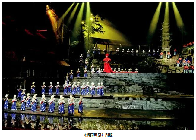 其實,這個方法之前也曾多次使用。不過這次的實踐讓筆者發現,很多情況下聲音的獨特效果可以根據舞美場景,甚至利用舞美裝置的特性來實現。這一點以后也可以繼續跟音響師們研究探討,從中發現、挖掘并再現出契合戲劇創意的聲音效果。例如,國外有的錄音棚用老教堂或者工廠廠房改造,以得到想要的聲音效果,包括好萊塢的電影錄音。這具有無限拓展的可能性,因為每一種聲音在不同的空間都會是不同的,關鍵也在于音響師是否有主觀創新的想法,畢竟對于多數戲劇音響設計來說,音響師首先要保證的是戲劇對聲音的基本要求,然后才是個性化需求。另外,音響師對舞美空間的解讀也尤為重要,舉個例子,幾年前參加湖南鳳凰的《煙雨鳳凰》實景演出項目的舞美設計,景的縱深有50 m多,一側是用于造景的山,一側是吊腳樓,中間風雨橋作為兩者的連接,遠處縱深就是利用實景的山和樹林。該劇的音響師就根據這樣一個悠遠的空間環境,制造從左到右的聲像差,形成由遠及近的聲音效果,的確讓觀眾感受到了空間距離上聲音傳遞效果,十分契合舞美所營造出的氛圍。