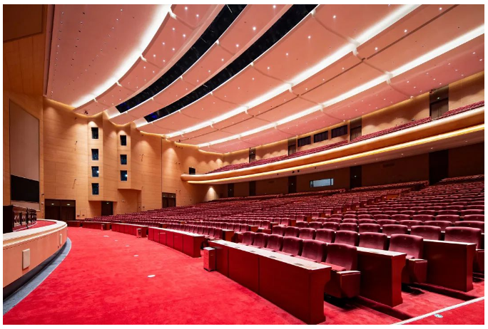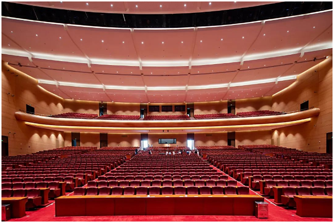 漢廳觀眾席分為兩層,共2350座,其中池座1650座、樓座700座,池座部分均帶有會議桌。與傳統劇場劇院相比,漢廳面積巨大,其臺口到觀眾席后排進深約41.4m,同時,觀眾席呈扇形展開,后部最寬部分約50.2m。從聲學角度來說,如此寬度和進深的觀眾席空間,對于聲場的均勻覆蓋而言具有非常大的挑戰。由于漢廳是高端演藝及重要會議場所,因此其對聲音的呈現有著極高的要求,在滿足設備的安全性與穩定性的基礎上還需要保證足夠的聲壓級、優秀的音質以及良好的語言清晰度。與此同時,擴聲系統還要具備: