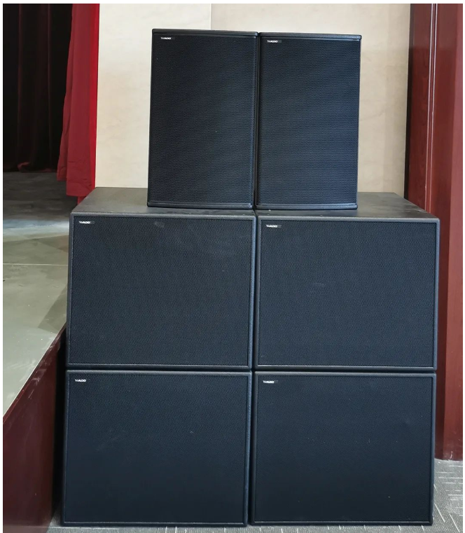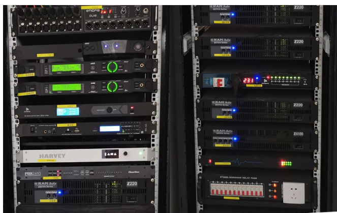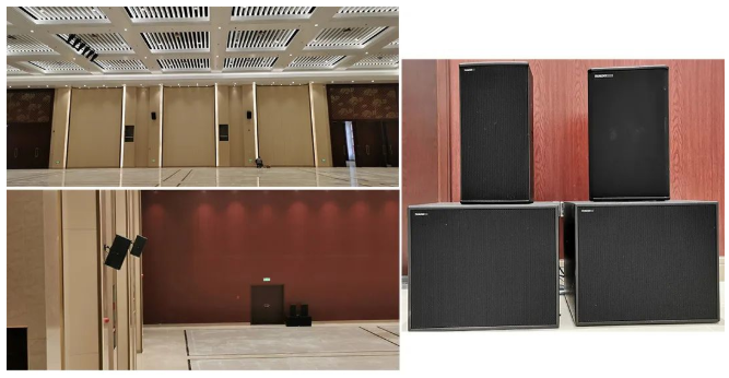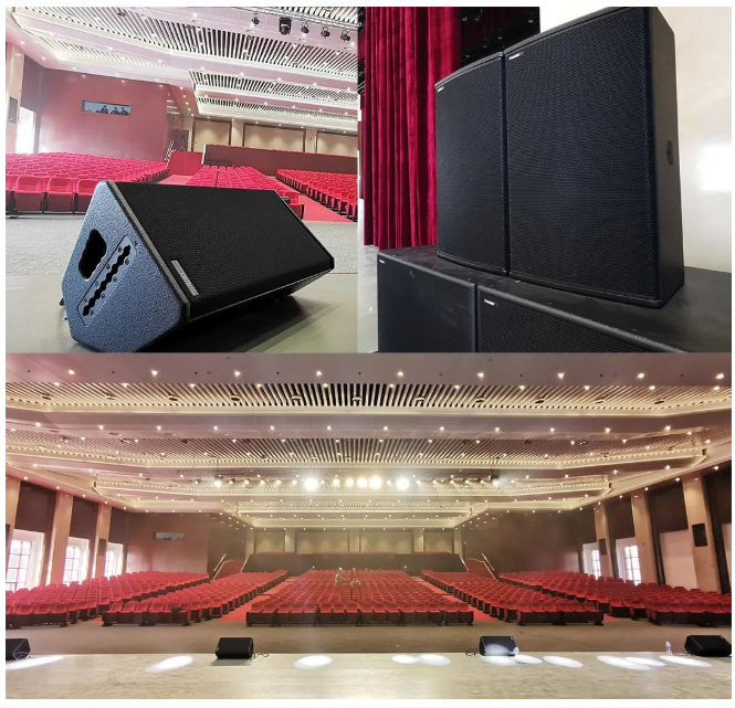 小報告廳左右主擴采用德國TWAUDiOT20N點聲源 2只,搭配4只緊湊型超低B17i,拉聲像則由2只T20i點聲源負責,后場補聲和舞臺返送則分別由左右鏡像對稱的全頻揚聲器M12iM12擔任,整個系統依然由RAM AudioZETTA系列功放進行驅動。